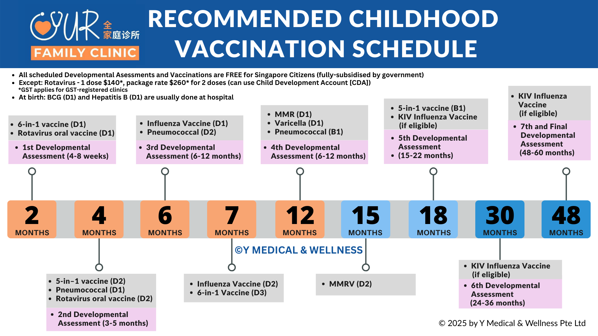 Below are two essential healthcare for children (from birth to below 18 years old) which are nationally-recommended and fully-subsidised (free-of-charge) for SCs.